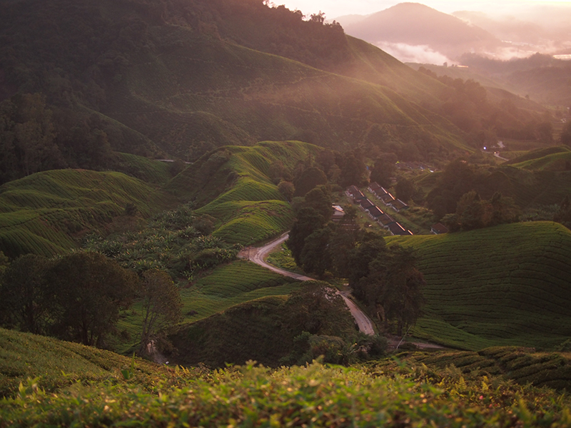 破晓只有短短的60秒,变幻无穷的光线,直到太阳照亮整个茶园,过程就像是欣赏一部精彩的art performing。在Sungai Palas的茶山上,每6个月太阳的位子会改变。如果金马伦的日出会改变,新加坡是不是也会如此呢?(我怎么都不曾思考过?好像太容易觉得理所当然的东西就会放弃质疑)